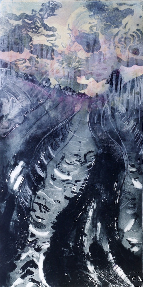 Very happy to have my artwork ” A Quiet Beginning “ included in the “Solstice” exhibition at The Old Lock Up Gallery . This artwork is based upon large sketchbook drawings of fields . Initially I was looking at how the land becomes etched when ploughing a furrow ready for planting seeds, and new growth . The ploughed lines reminded me of what happens when I draw directly onto a plate , scribing an image into the surface of a plate ready for printing . “A Quiet Beginning” evolved into a collagraph combined with a block print . The exhibition opens Saturday 22nd Nov 2-4.30pm , it will be a lovely show and worth a visit . Do pop along . The exhibitions runs from Saturday 22nd November until 21st December at The Old Lock Up Gallery 19 The Hill, Swifts Hollow, Cromford, Derbyshire, DE4 3RF.
